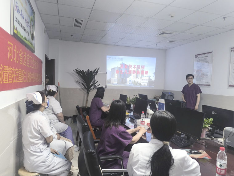 儿科主任刁玉巧教授带领团队,赴当地开展了县级综合医院适宜卫生技术推广项目——脐静脉置管在危重新生儿抢救中的应用。作为儿科适宜技术推广的第二站,此次培训聚焦脐静脉置管及无创辅助通气技术,旨在提高基层医疗机构危重新生儿救治能力。新乐市中医医院儿科、产科多名医护参加培训,学员们纷纷表示受益匪浅,“省四院专家带来的规范化理论和技术,让我们在学科专业上更加精进”。