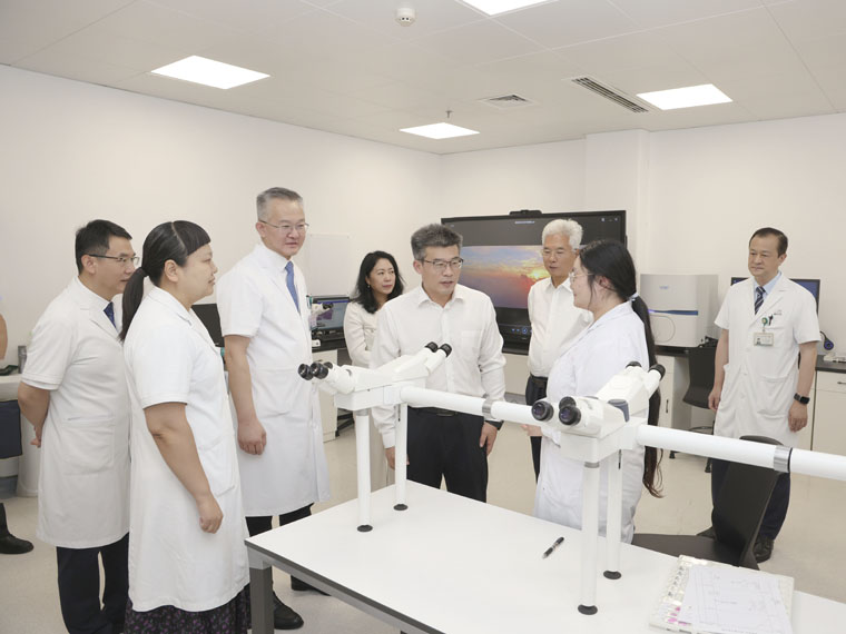 在病理科,校领导详细了解河北省数智病理中心的建设进程,以及病理诊断工作的开展情况,对果冻传媒