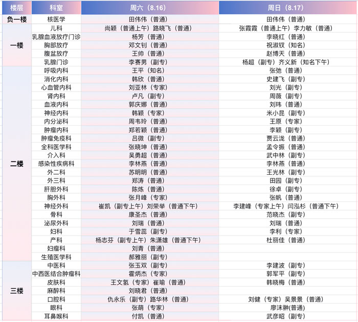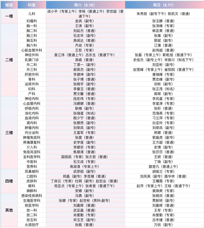 注:具体以实际出诊为准。