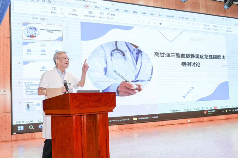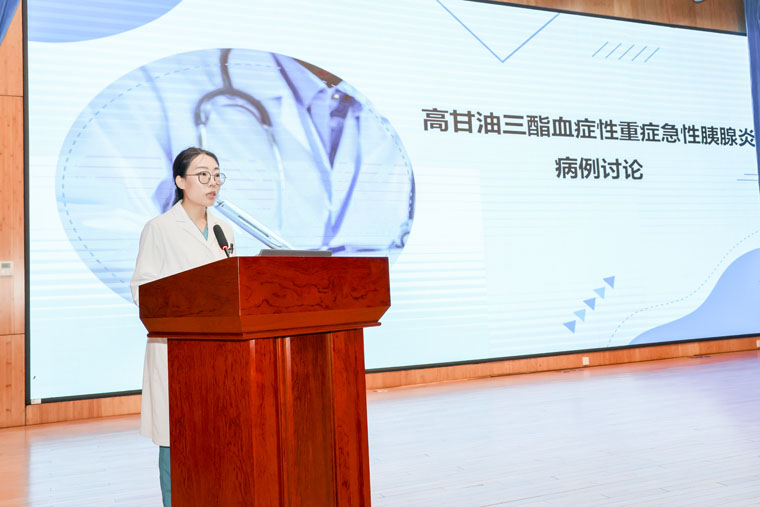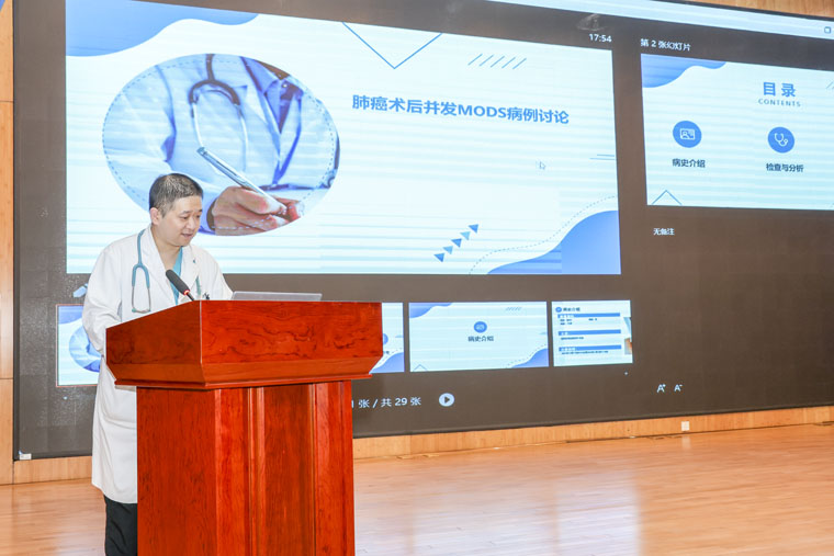 会议重要环节——疑难病例讨论,采用多学科协作模式,打破了科室间的专业壁垒,实现诊疗思路的深度融合。两位主管医师分别聚焦典型疑难病例,展开全面且清晰的病情阐述。苏洁医师以《重症急性胰腺炎(HTG-SAP)病例讨论》为主题,从患者发病诱因、详细病史采集,到系统体格检查中的关键体征,再到实验室指标、影像学检查等辅助检查结果,进行了层层递进的梳理,完整呈现了该重症胰腺炎病例的临床特征与诊疗进展。秦皓医师围绕《肺癌术后并发 MODS 病例讨论》,重点汇报了患者肺癌手术情况、术后多器官功能障碍综合征(MODS)的发生发展过程,以及各阶段生命体征监测数据、器官功能评估结果。