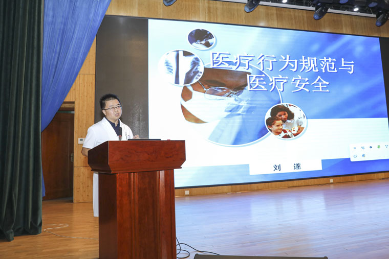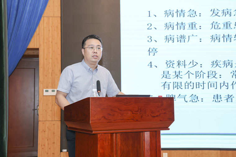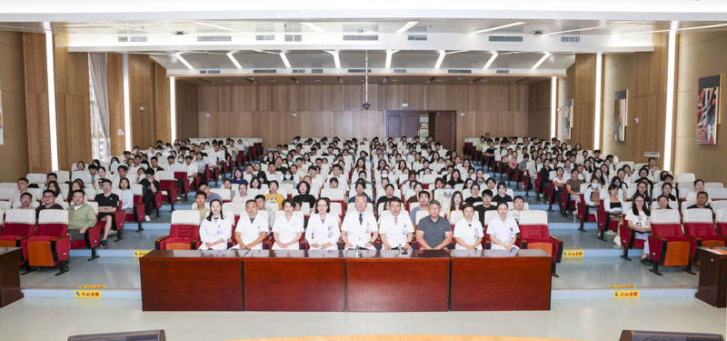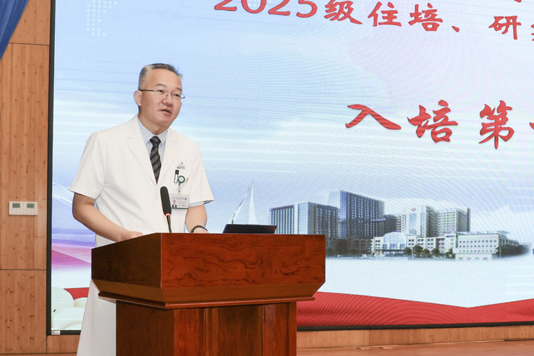 入培第一课由副院长田晓玲主持,常务副院长何宏涛对新学员表示欢迎,并详细介绍医院的发展概况以及研究生、住培教学工作开展情况,他勉励学员“遇良师、结益友,以仁心仁术践行医者使命”。