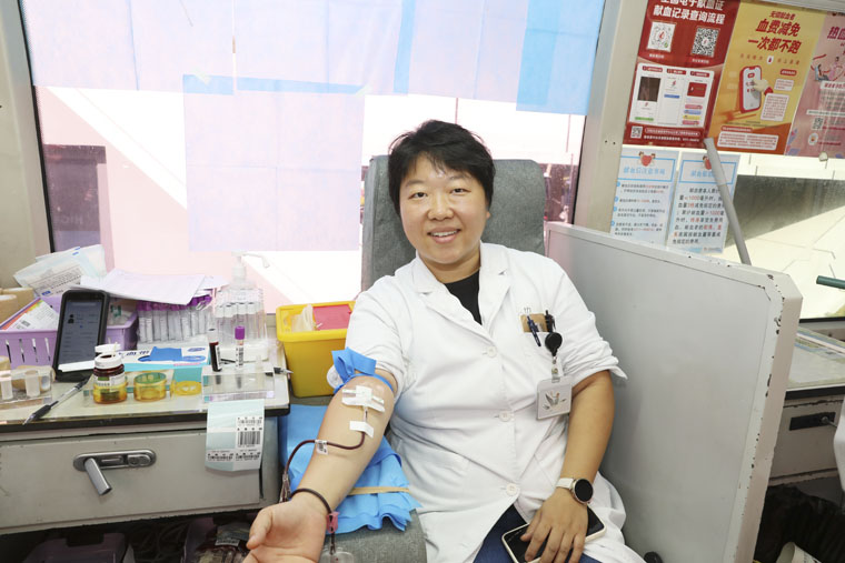 上午8时,献血登记点已经排起了等候献血的队伍。临床医生、护理骨干、行政后勤、规培学员、实习同学等在工作人员和志愿者的引导下,有序完成信息登记、健康征询、体格检查、血液初筛等环节。这其中既有多次参与献血的“老将”,也有首次献血的“新兵”。作为奋战在救死扶伤一线的医护人员,大家深知血液在临床救治中的重要性和紧迫性,纷纷表示希望用热血为患者搭起生命桥梁。