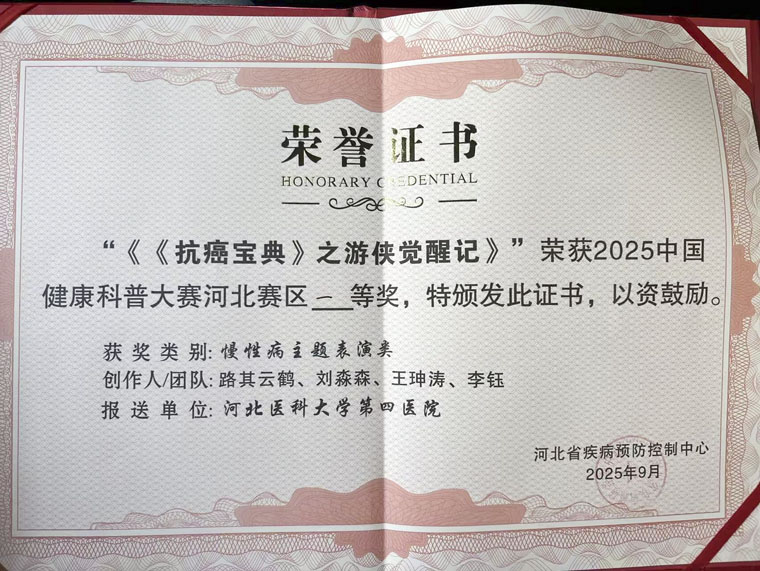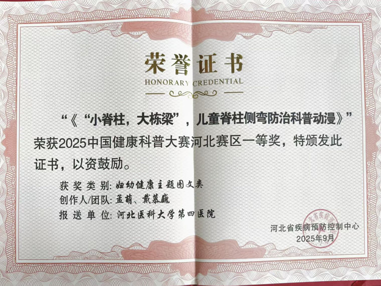 医务人员精心准备,积极参赛,取得一等奖4项、二等奖3项、三等奖2项的好成绩。其中路其云鹤组《<抗癌宝典>之游侠觉醒记》,孟萌组《“小脊柱,大栋梁”儿童脊柱侧弯防治科普动漫》等4项“一等奖作品”成功晋级全国总决赛。
