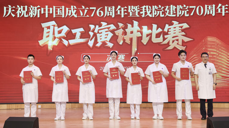 经评委综合打分,翟丽阳的《76载山河护佑,70年医魂相伴》荣获一等奖,崔子贤、刘嘉琳获得二等奖,王公宁等选手分获三等奖、优胜奖及优秀奖,《盛世传薪火 青春谱华章》获特别奖。院领导为获奖选手及演职人员颁奖,并向离退休前辈献花致敬。比赛在合唱《歌唱祖国》的歌声中圆满落幕。