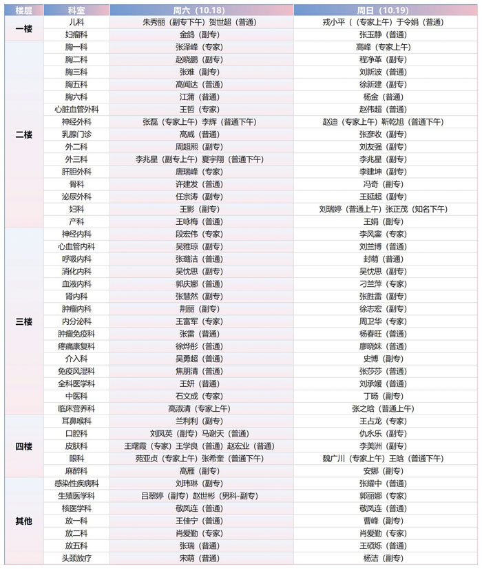 注:具体以实际出诊为准。