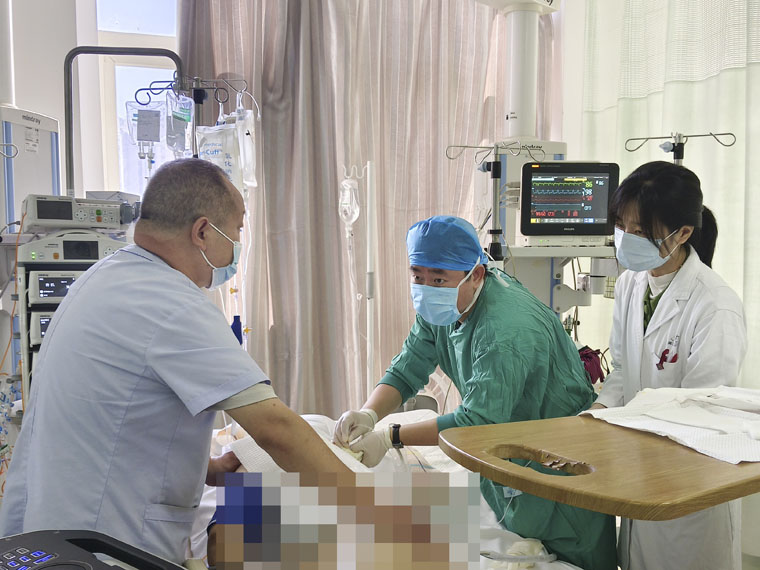 心内科收治了一名心梗患者,在接受冠脉支架术后,出现顽固性室速,偶发室颤,恶性心律失常控制不佳等症状。姚铁柱主任医师遂请麻醉科紧急床旁会诊,胡涛副主任医师为患者行床旁超声引导下交感神经节阻滞后,其室速发作次数明显减少,2小时后室速未再发作,这一成功救治突显了麻醉治疗的价值。