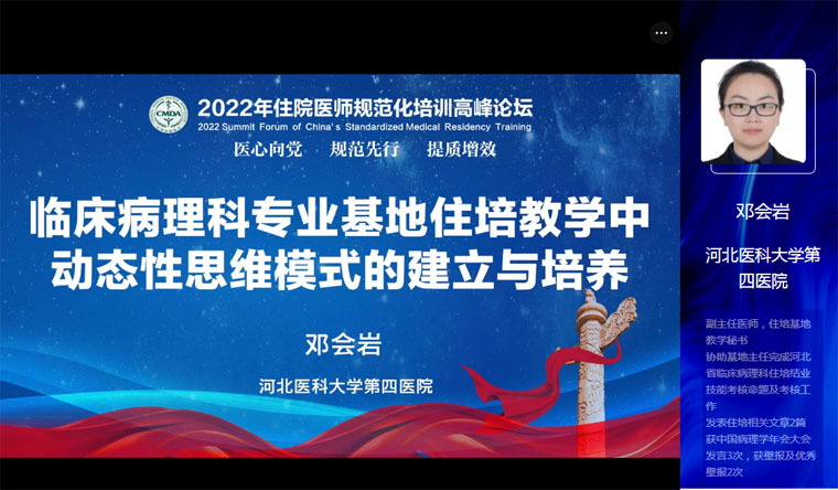(专业基地教学秘书邓会岩在2022年住院医师规范化培训高峰论坛中进行发言)