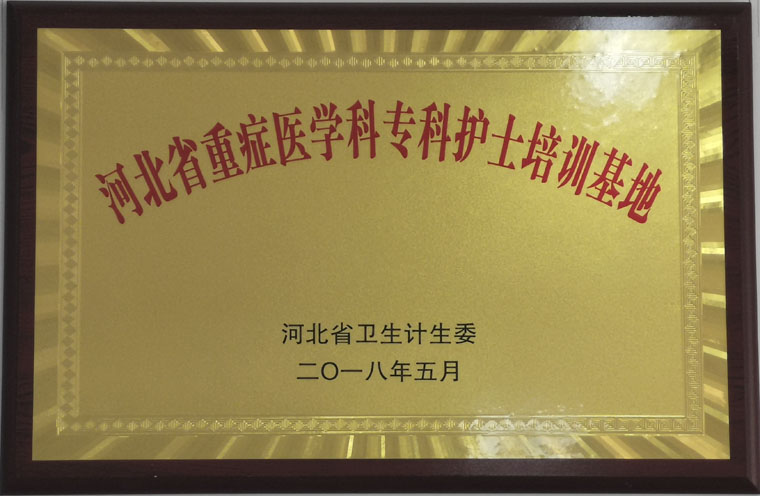 重症医学科。2018年5月被评为“河北省重症专科护士培训基地”。科室占地面积2700平米,开设床位43张。科室护理团队在尹彦玲护士长带领下,以专业、学术为导向,打造了一支专业的重症护理团队,科内建立了ECMO小组、CRRT小组、重症超声小组、护理科研、重症监测小组等9个专业护理学组,为医院及省内培养了大量的重症护理人才。
