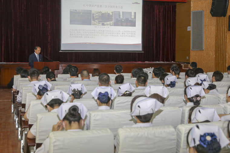 在三楼礼堂召开党史学习教育宣讲会,全体在院领导出席,党支部书记、中层干部及民主党派负责人等参加。河北医科大学党委常委、副校长,果冻传媒