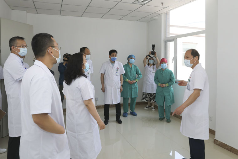 单书记一行首先来到心内科病区,随机向患者询问了解他们在住院期间对医院的医疗、护理、住宿及饮食是否满意,并表示如果对医院有什么意见和建议,可以直接向护士长反应,医院都会虚心接受,积极改进服务,力求提高群众就医满意度。随后,单书记一行视察了手术室和职工食堂,他指出,医生做手术十分辛苦,要对现有空间进行整合改造,尽快规划设立手术休息室,帮助大家养精蓄锐,从而以更饱满的精神状态投入工作。同时,食堂应更好地为职工提供便利,不断增加职工的满意度。在南病房楼,单书记现场了解装修工程进展,筹划部署科室搬家事宜。