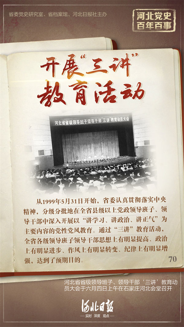 党史学习教育|河北党史百年百事六十一:开展“三讲”教育活动