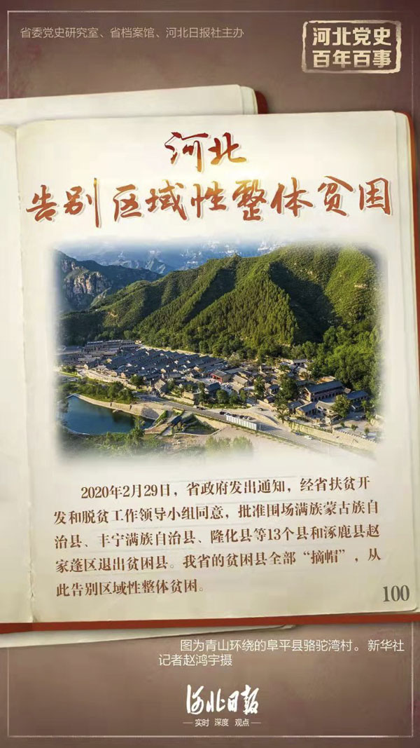 党史学习教育|河北党史百年百事九十三:河北告别区域性整体贫困
