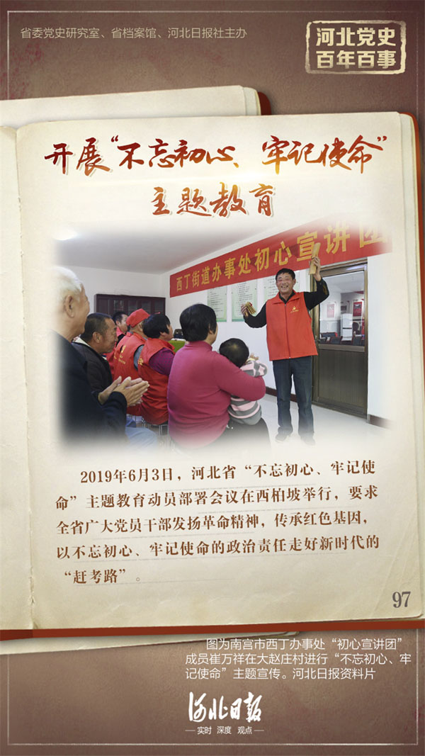 党史学习教育|河北党史百年百事九十九:开展“不忘初心、牢记使命”主题教育