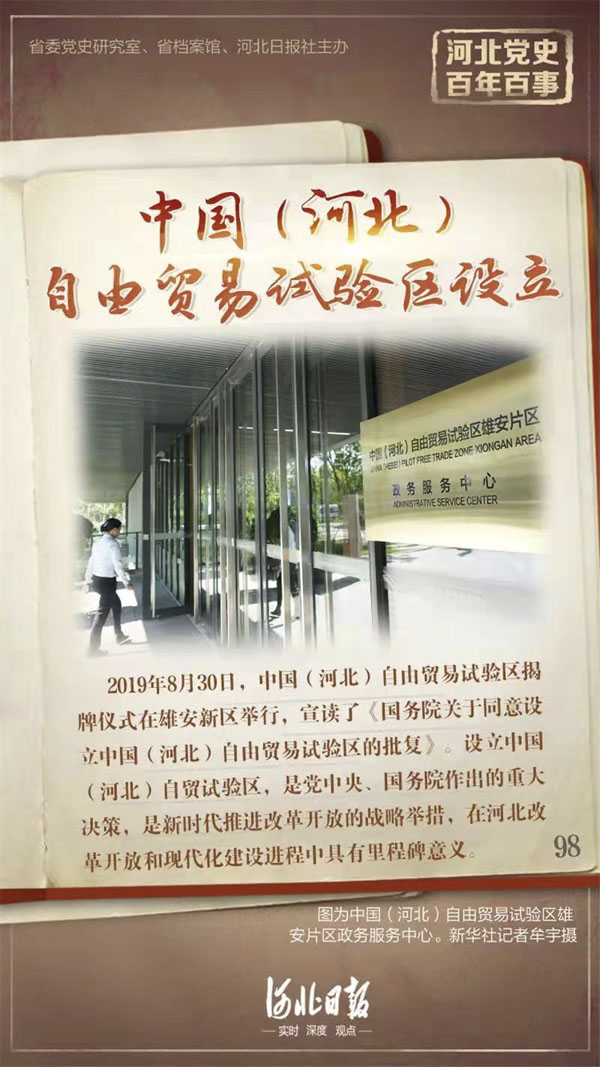 党史学习教育|河北党史百年百事一百:中国(河北)自由贸易试验区设立