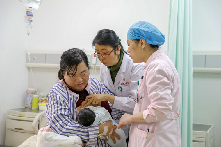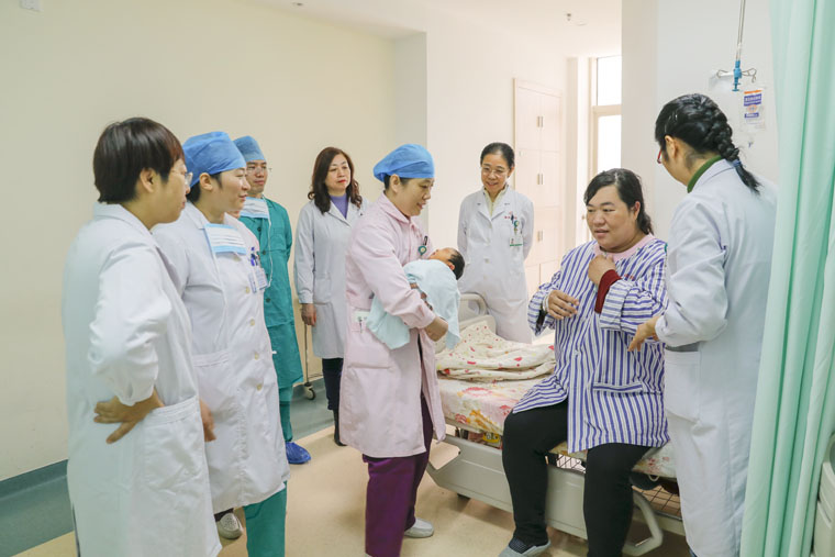 目前“肌张力低,皮肤紫绀”,张会芬老师迅速做出判断并持续进行监测;麻醉科的史永昌摆好气管插管器具,准备随时抢救;产房的刘雯莉熟练地给孩子吸痰、吸氧、保暖,并适时地予以刺激,大家的目光又一次集中到了孩子身上,此时,空气仿佛凝固了……“哭了!哭了!”,有人兴奋地喊出来,一个崭新的生命顺利“迫降”,在场的医护人员无不为自己的努力和母子平安而动容。