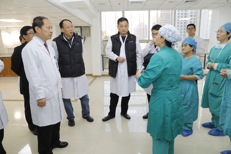 党委书记、院长单保恩,副院长翟三江、徐金升、何宏涛带领院办室、基建处、后勤保障处、保卫处等部门负责人深入一线行政查房,对于部分科室建设、基建保障建设和职工福利等问题到现场视察、调研、解决问题。