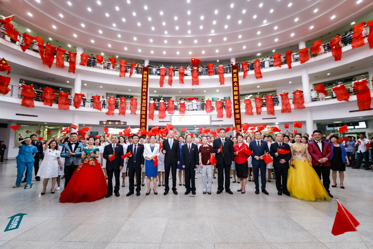 隆重举行升国旗、升院旗仪式,全体院领导、医院党员、干部、职工及在院学生等共计600余人参加。
