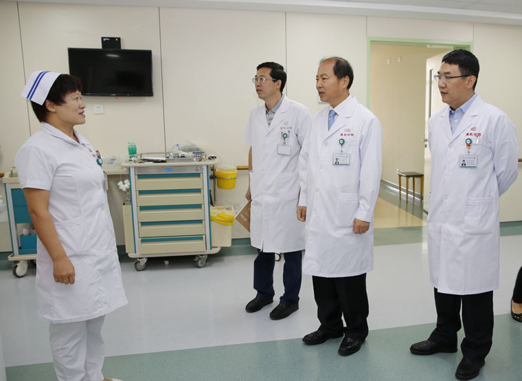 为了深入开展主题教育,院领导还带领相关部门负责人到临床一线开展调研工作。9月23日上午,党委书记单保恩、副院长何宏涛,带领后勤保障处、基建处、药学部、保健处、教务处、门诊部、保卫处、院办等8个职能部门负责人,深入医院门诊、医技、病房一线开展调研活动,听取职工和患者意见,现场为一线科室解决实际问题。9月24日上午,刘运江副院长带领门诊部、药学部、院办室、宣传部等职能部门负责人,深入分管门诊、医技科室,开展调研工作。
