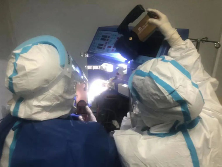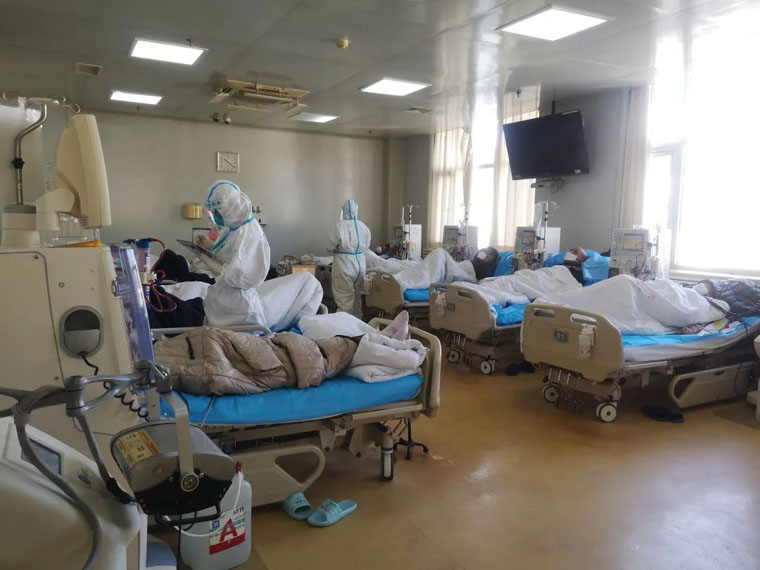 肾内科作为河北省血液净化质控中心挂靠单位,在院领导的协调下克服重重困难,接收了来自该院的所有透析患者。为保证600百余名患者的透析治疗,他们将血透班次从平常每日3个班次,增加到每日4个班次,20小时连续运转,人停机不停……在高强度、高难度的工作面前,肾内科医护人员没有退缩,逆势而上,他们像“盾牌”一样牢牢挡在了患者前面,挡在了病毒前面。同时,在自身医务人员数量紧缺的情况下,科室先后派出5名医护人员前往我市定点医院血透室支援。