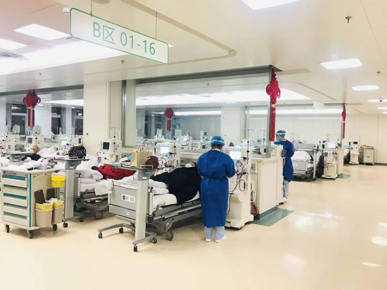 党委的坚强领导下,在疫情防控领导小组安排部署下,在职能部门和兄弟科室的支持帮助下,肾内科核心小组快速反应、多措并举,采用最小作战单元人员封闭轮替工作、最小代价保障透析室工作正常运转,全力以赴保护血透患者生命健康。