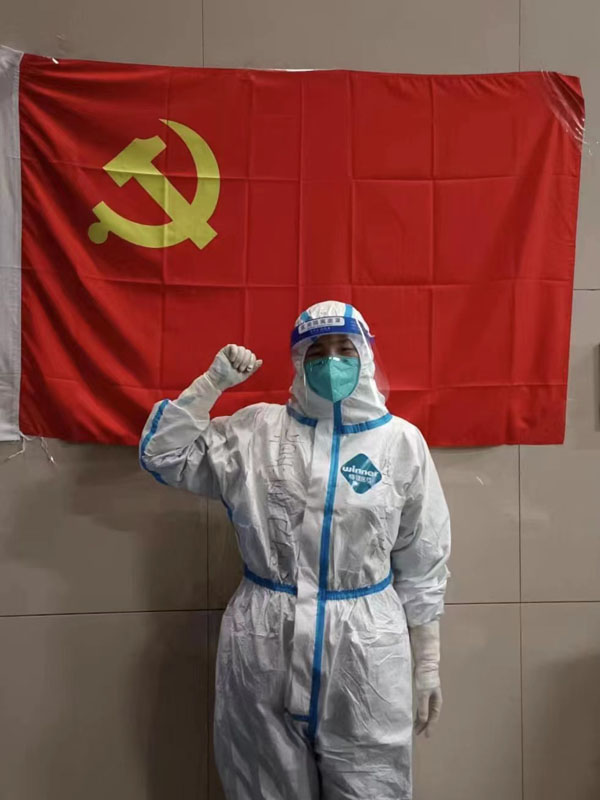 方舱内患者赵荣(化名)已经怀孕5个多月了。得知情况,产科周旭旭特意找到她,询问是否需要帮助。经了解,赵荣从前一天晚上开始就有宫缩,并且有暗红色阴道出血。此刻宫缩十多分钟一次。这个情况立刻引起了周旭旭的警觉,并向医生汇报,建议患者转院寻求进一步治疗。在联系转院的过程中,周旭旭又多次进入病区询问她宫缩、出血及阴道分泌物的情况,并向其耐心讲解注意事项和自我监测胎动的方法。直到这名孕妇转到定点医院,周旭旭悬着的一颗心才彻底放下。周旭旭说,在这个特殊时期,希望能尽自己的一份微薄之力让每一位准妈妈平安、顺利。