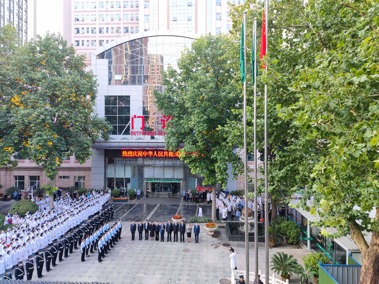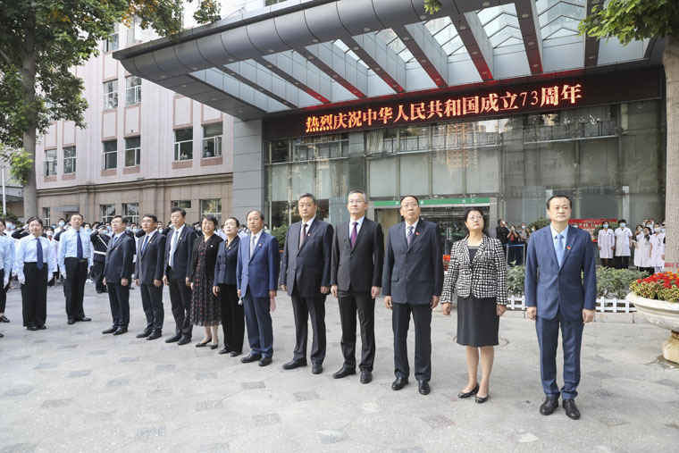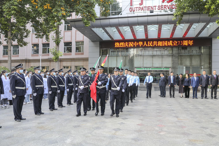在本部和东院区举行了庆祝中华人民共和国成立73周年升旗仪式,医院全体党政领导、干部职工、学生、患者及家属一道共庆伟大祖国73岁生日。