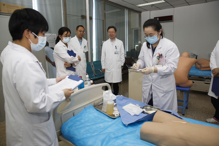 技能操作考核于5月9日-11日进行,包括基本操作、心肺复苏及除颤、阅片及心电图判读等。彭利副院长在现场悉心指导,对此次培训考核的安排给予充分肯定,同时提出进一步改进的建议。东院急诊科、血液内科、呼吸内科、神经内科、心内科、外二科、产科、儿科等科室专家担任评委。参加考核人员通过抽签方式决定考核内容,各位考评专家在严格执行考核标准的同时,对青年医师实操中出现的问题现场具体讲解,精确解读规范要求,手把手指导每一位青年医师的操作,对提高大家的临床实际操作能力起到积极的促进作用。在考核前,东院医务处提前下发相关通知,制定了相应的考核标准等,充分保证了本次考试公平公正进行。