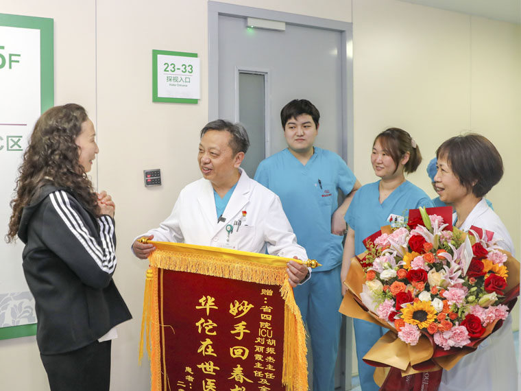 重症医学科成功救治了一名新冠病毒感染的危重型患者。患者和家属向医务人员深深表示感谢,其爱人激动地说,“是省四院的ICU给了我老伴儿第二次生命,谢谢你们拯救了我们一家!”