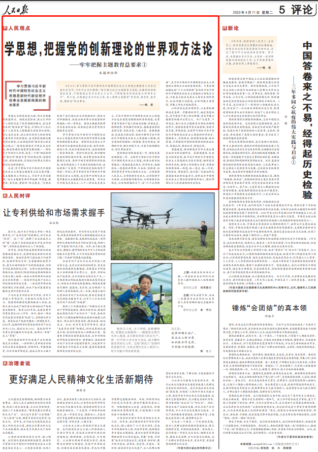 4月3日,学习贯彻习近平新时代中国特色社会主义思想主题教育工作会议在北京召开,习近平总书记强调,“我们要以这次主题教育为契机,加强党的创新理论武装,不断提高全党马克思主义水平,不断提高党的执政能力和领导水平”。4月11日起,《人民日报》评论版推出系列评论文章,深入阐释主题教育“学思想、强党性、重实践、建新功”的总要求。