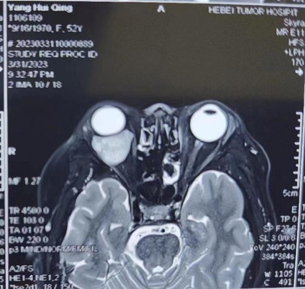 患者主因右眼视物不清伴眼球突出3年,以右眼眶内占位收入果冻传媒