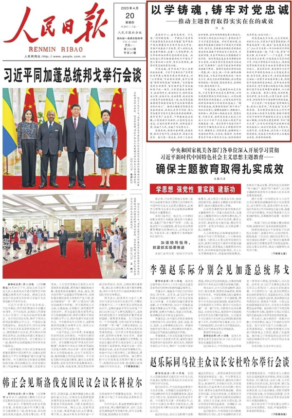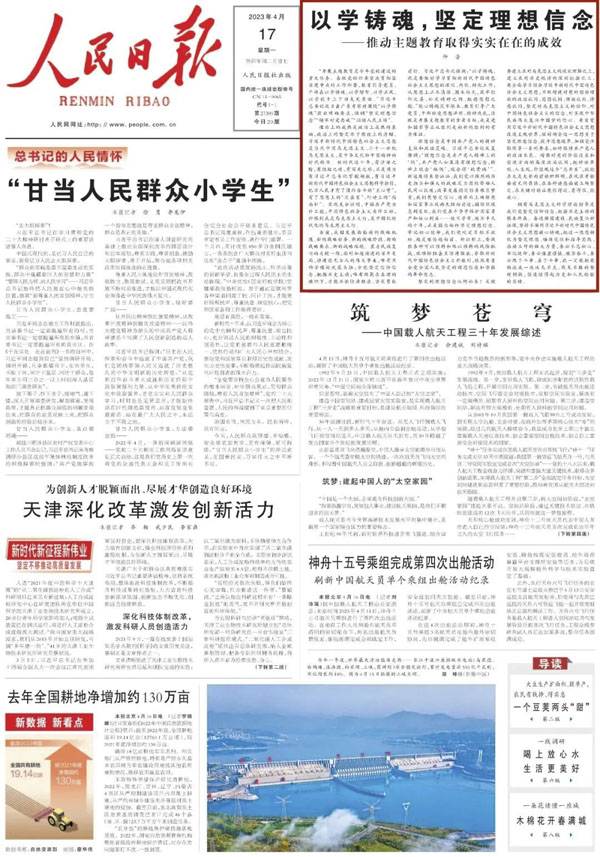 “开展主题教育是今年党的建设的重大任务。各级党组织要坚决贯彻落实党中央的工作部署,教育引导党员、干部在以学铸魂、以学增智、以学正风、以学促干上下功夫见实效。”习近平总书记近日在广东考察时围绕“以学铸魂”提出明确要求,强调“坚定理想信念”“铸牢对党忠诚”“站稳人民立场”。人民日报刊发三篇仲音文章,围绕“以学铸魂”进行重点阐释。