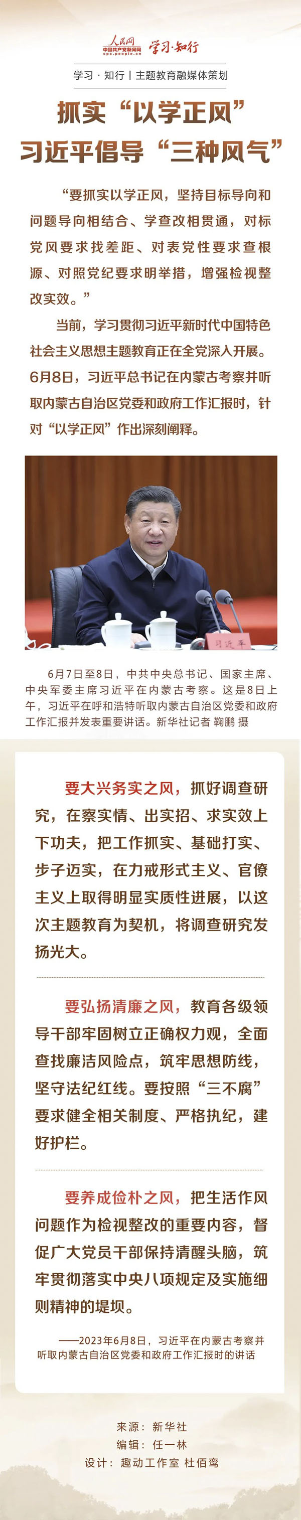 主题教育微课堂 | 抓实“以学正风” 习近平倡导“三种风气