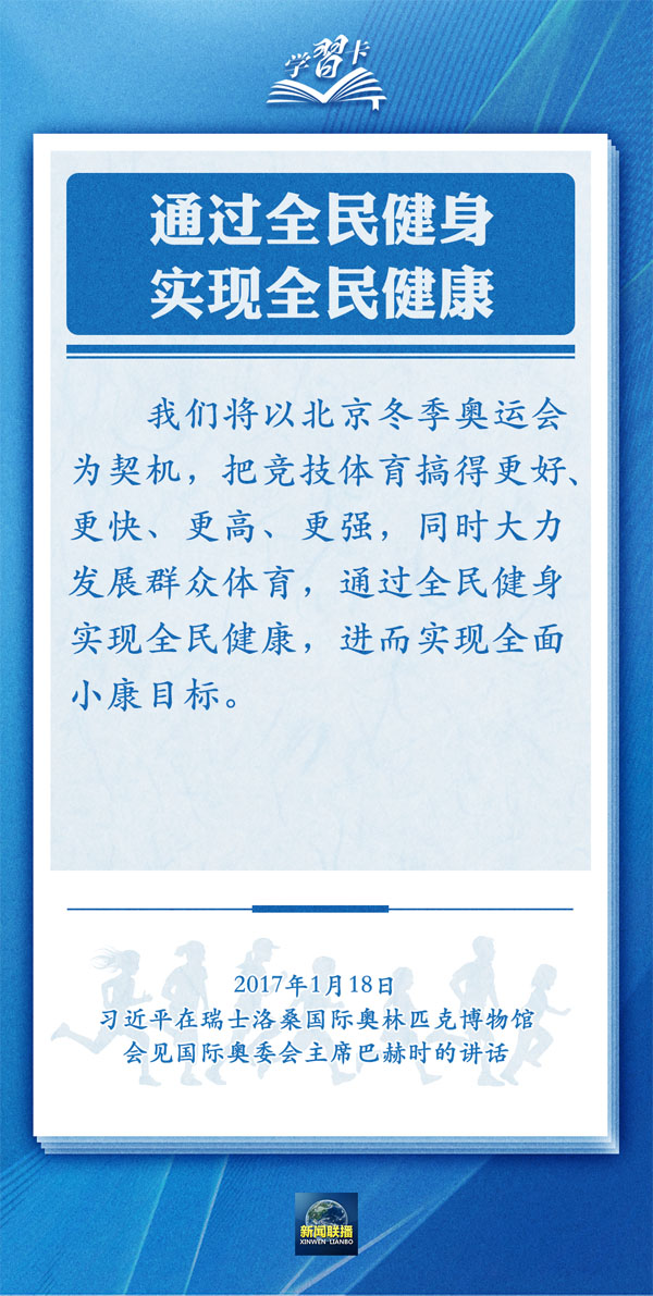 “全民健身是全体人民增强体魄、健康生活的基础和保障,人民身体健康是每一个人成长和实现幸福生活的重要基础。”