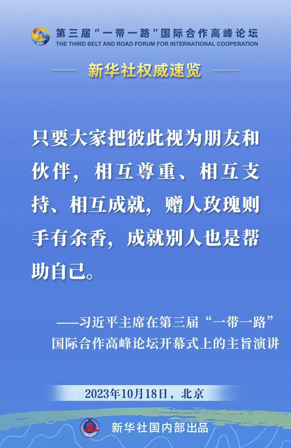10月18日,国家主席习近平在第三届“一带一路”国际合作高峰论坛开幕式上发表主旨演讲。一起来看金句。