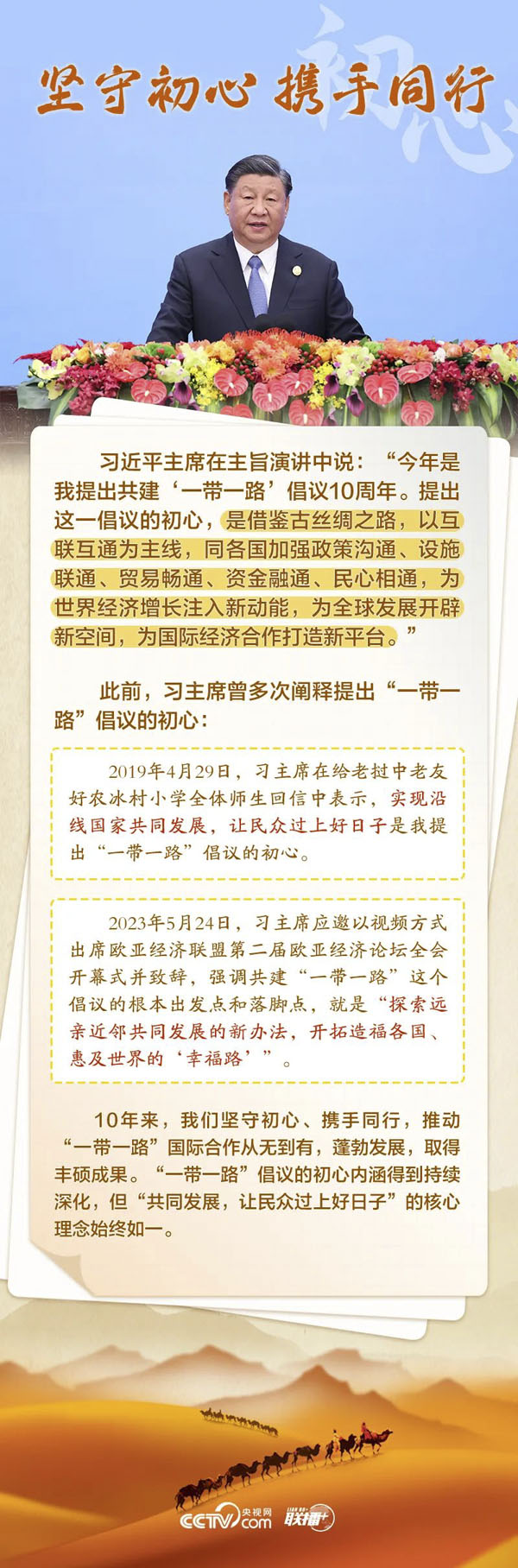 “十年栉风沐雨,十年春华秋实。共建‘一带一路’源自中国,成果和机遇属于世界。”10月18日,习近平主席出席第三届“一带一路”国际合作高峰论坛开幕式并发表主旨演讲。
