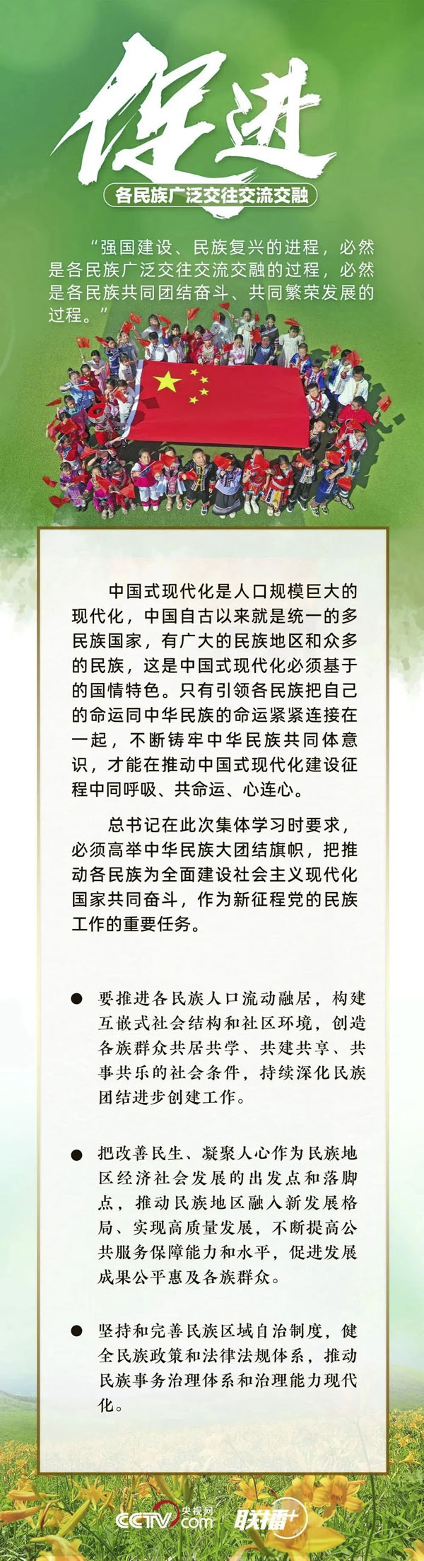 铸牢中华民族共同体意识是党的民族工作和民族地区各项工作的主线。如何推进新时代党的民族工作高质量发展?总书记有何最新部署?央视网《联播+》与您一起了解。
