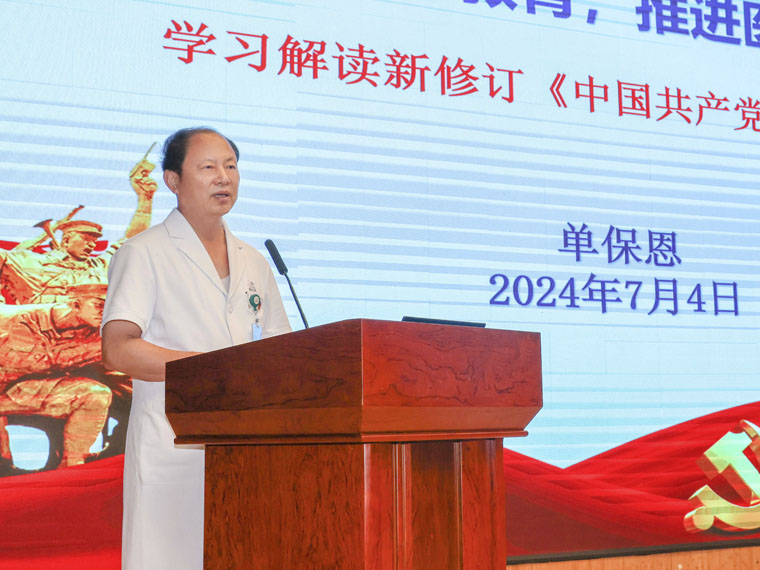 党委书记单保恩在本部新医技病房楼报告厅讲授纪律专题党课,全体在院领导,各党总支书记、党支部书记、党政职能部门中层干部及各临床医技科室、教研室相关负责人参加。赵群副院长主持会议。
